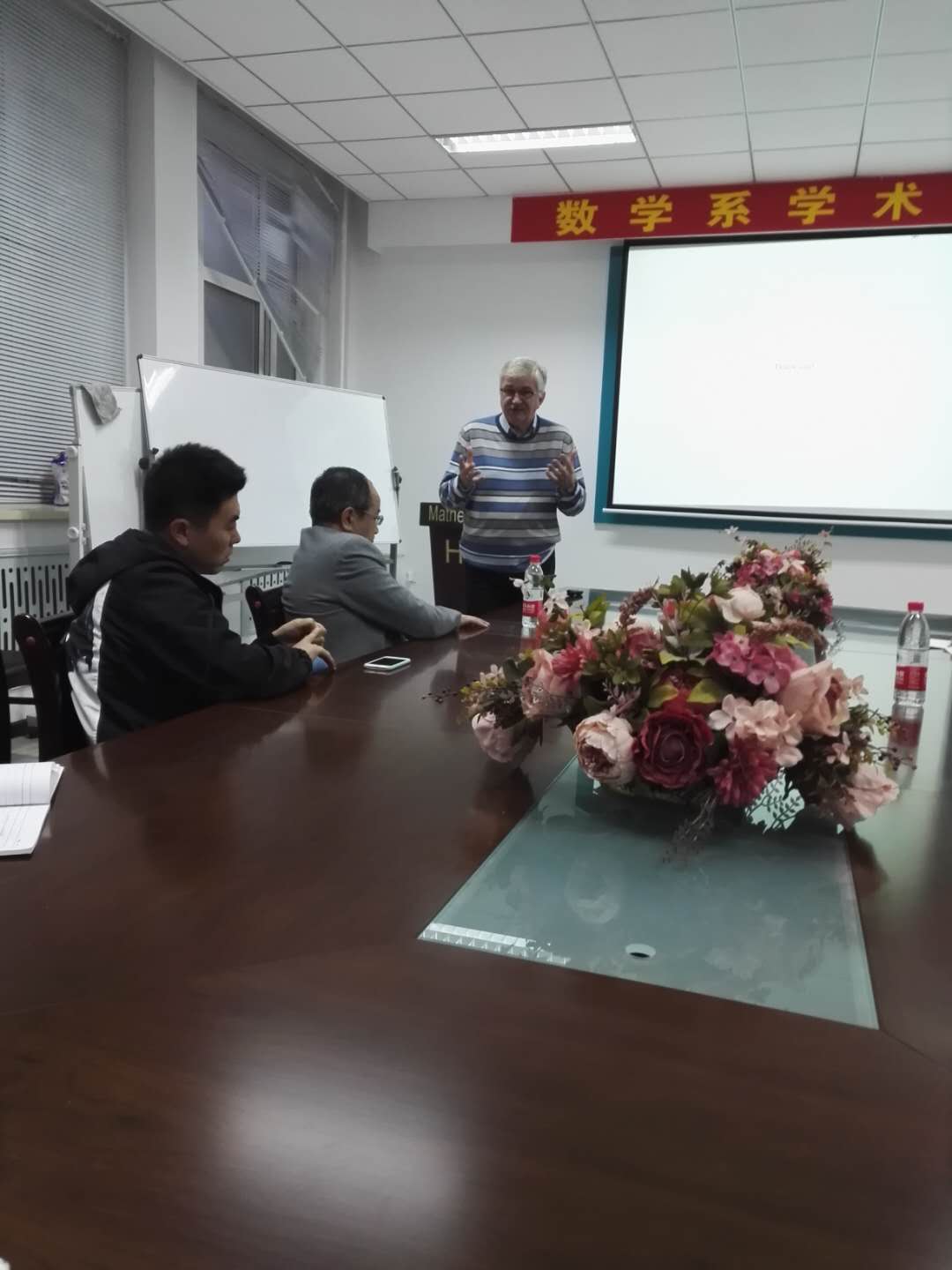 应数学系付永强教授的邀请,俄罗斯科学院西伯利亚分院Sobolev数学研究所应用分析研究室主任、通讯院士和新西伯利亚州立大学教授Andrey Vesnin于10月3日至6日来我校访问并讲学,于10月5日下午15:00在格物楼503会议室做了题目为On complexity of 3-manifolds的精彩报告。 报告由付永强教授主持,相关专业的二十位师生参加了讲座和讨论。Andrey Vesnin教授的报告系统、全面、细致、深入,师生们从中不仅可以了解到相关领域的前沿工作,更对自己接下来的工作学习方向有了更为清晰的认识,收获颇丰。