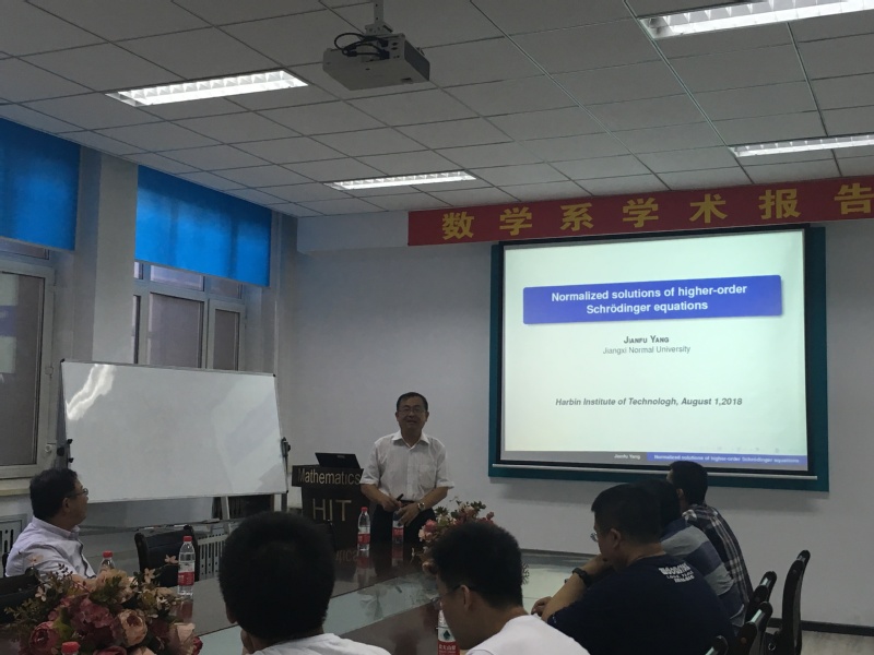 应数学系孙杰宝副教授邀请,江西师范大学数学与信息科学学院杨健夫教授和郭小江教授于近期访问了我校,并于2018年7月31日下午15:00-17:00在格物楼503报告厅,分别以《Normalized solutions to higher-order Schrodinger equations》和《Algebras of right ample semigroups》为题进行了学术讲座,两位教授介绍了相关领域内的最新进展和成果。报告由孙杰宝副教授主持,数学系的师生在报告现场与两位老师进行了热烈的交流与讨论,最后老师间进行了学术研讨。