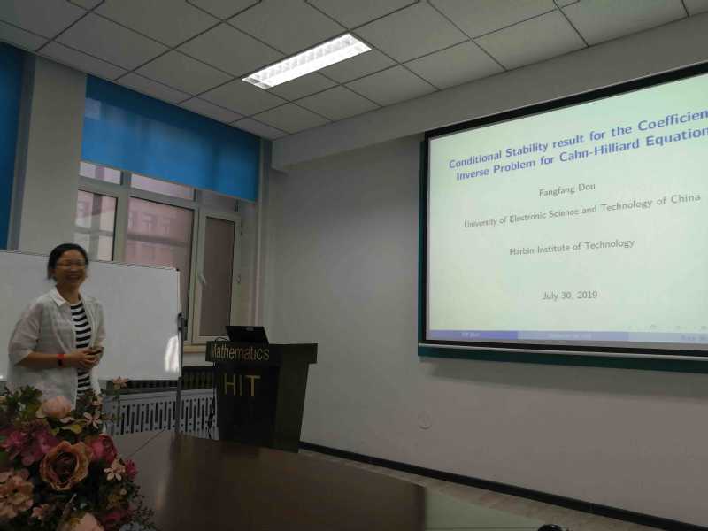 应必赢bwin线路检测中心官网郭玉坤副教授的邀请,电子科技大学窦芳芳副教授于2019年7月27至31日访问了我校,并于2019年7月30日下午15:00-16:00在格物楼503报告厅进行了一场学术讲座。窦老师的报告介绍了Cahn-Hillard方程系数反问题稳定性的相关研究进展。报告由郭玉坤副教授主持,必赢bwin线路检测中心官网的师生在报告现场与窦老师进行了热烈的交流与讨论。