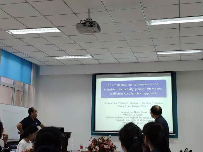 第一场报告时间为6月4日上午8:30-11:30,地点为格物楼503室,共两个报告。杨欧研究员分别以“Socioeconomic status, access to invasive coronary angiography, and survival probability of acute myocardial infarction patients”、“Environmental policy stringency and industrial productivity growth: An varying coefficient cost function approach”为题系统地讲述经济计量和统计模型在建模中研究问题因素的确定、实验设计及数据的采样等问题,并围绕社会经济地位对地区突发性医院费用的影响,对当地政府的医疗政策提供了建设性的规划,就其研究工作怎样获得政府、公司及企业等持续的经费支持给予了良好的建议。