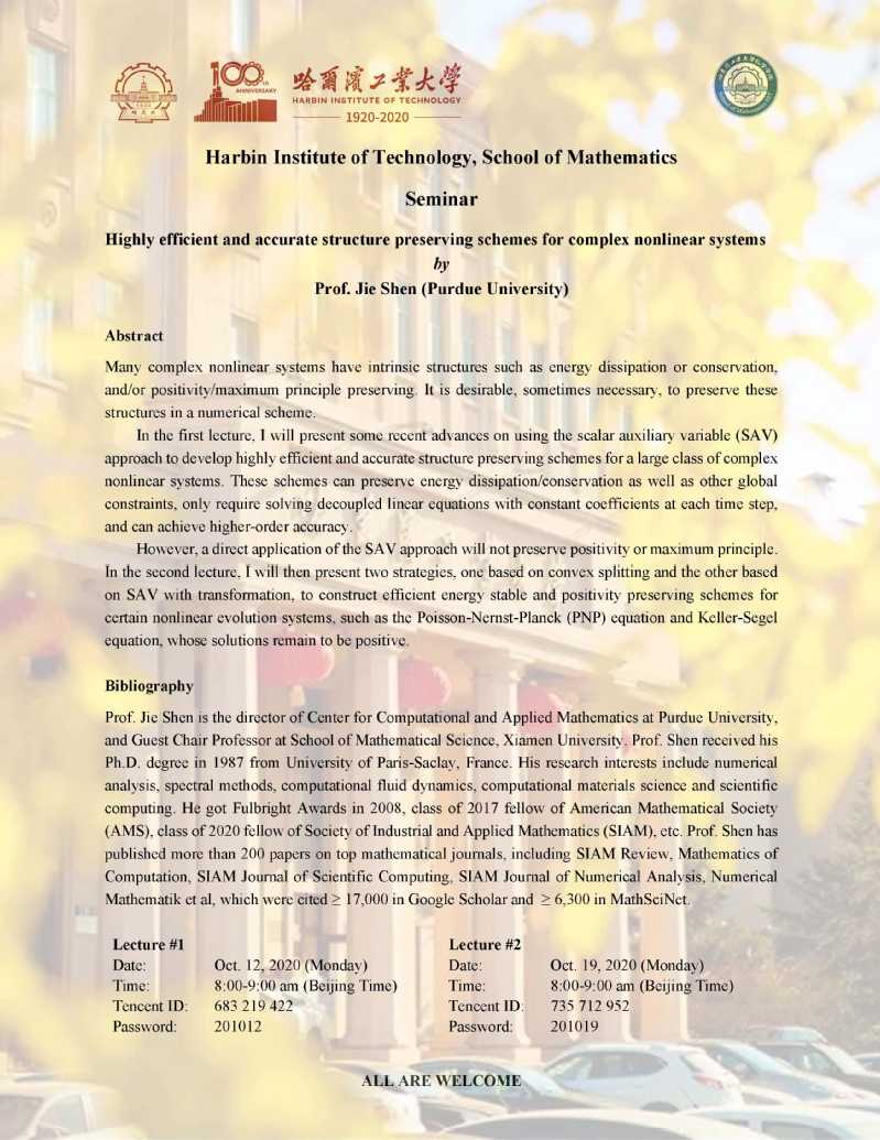 哈工大百年校庆必赢bwin线路检测中心官网系列学术报告之一百一十六 美国普渡大学沈捷教授学术报告通知