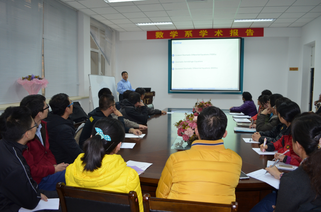 2014年10月29日下午14:00,中科院数学与系统科学研究院洪佳林研究员在格物楼503做了题为《Fundamental Convergence Theorems of Numerical Methods for Stochastic Differential Equations》的学术报告,报告由刘明珠教授主持,数学系三十余位师生听取了报告并进行了讨论。
