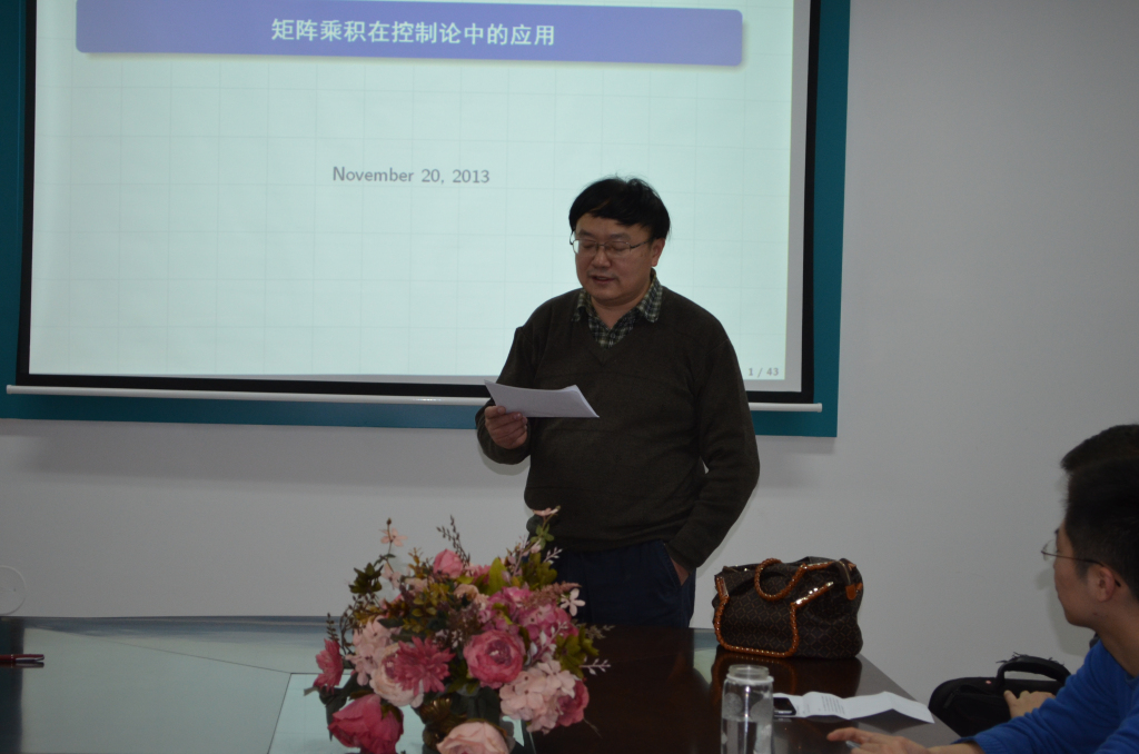 2014年11月11日上午 8:30-9:30,山东大学必赢bwin线路检测中心官网冯俊娥教授在格物楼503做了题为《各种矩阵乘积在控制理论中的应用》的学术报告,报告由田波平教授主持,数学系十余位师生听取了报告并进行了热烈的讨论。