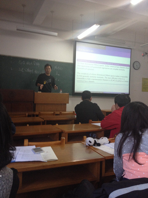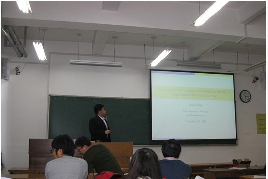 11月21-23日,大连理工-哈工大2014年数学学术交流报告会在大连理工大学举办。我系副主任付永强教授率队,郑宝东教授、陈明浩教授、陈胜教授参加了此次交流活动。大连理工大学必赢bwin线路检测中心官网院长卢玉峰教授、我系副主任付永强教授分别在开幕式上致辞。随后,与会的青年教师分别做了学术交流报告。我系陈胜教授、雷强博士、杨国俅博士、靳水林博士、张超博士、李祝春博士、康文博士、矫贺明博士,大连理工大学必赢bwin线路检测中心官网的李风玲博士、张超博士、肖现涛博士、石瑞博士和段犇博士在报告会上作了学术报告。双方通过学术报告会交流了各自最新的研究进展,增进了了解。