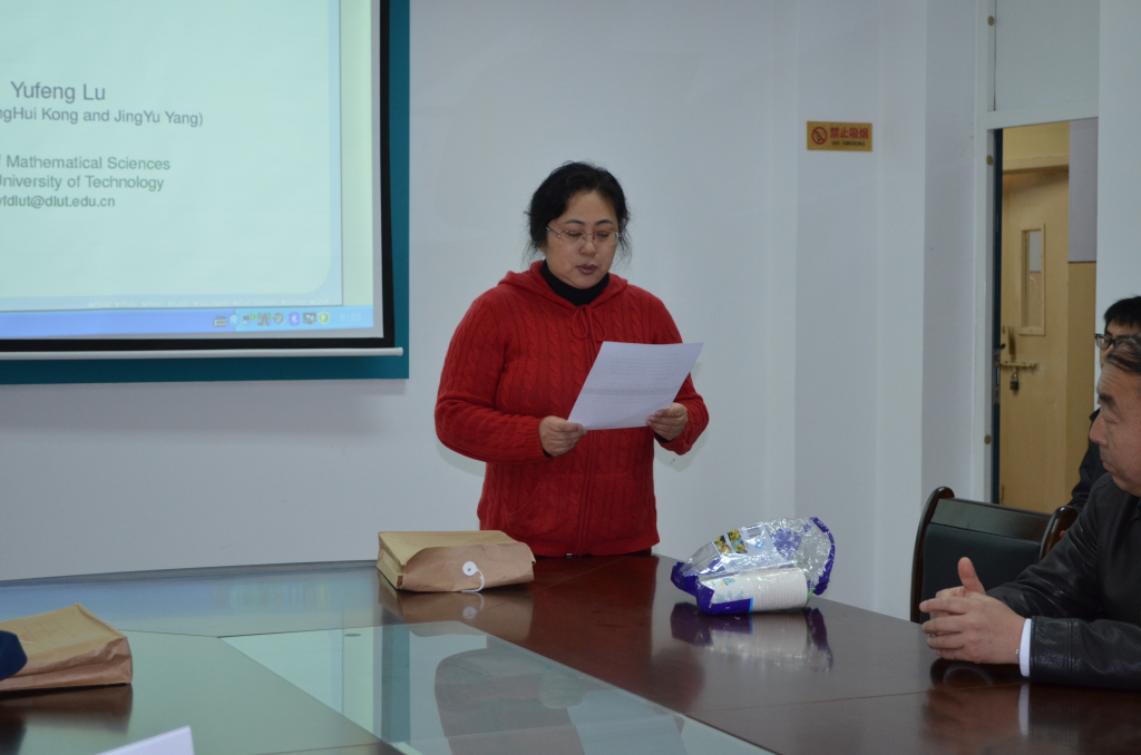2015年4月12日上午8:30-9:30, 大连理工大学数学科学学院院长卢玉峰教授在数学系会议室(格物楼503),做了题为《Commuting Toeplitz Operators 》的学术报告,报告由数学系吴勃英教授主持,四十余位师生听取了报告并进行了热烈的讨论。