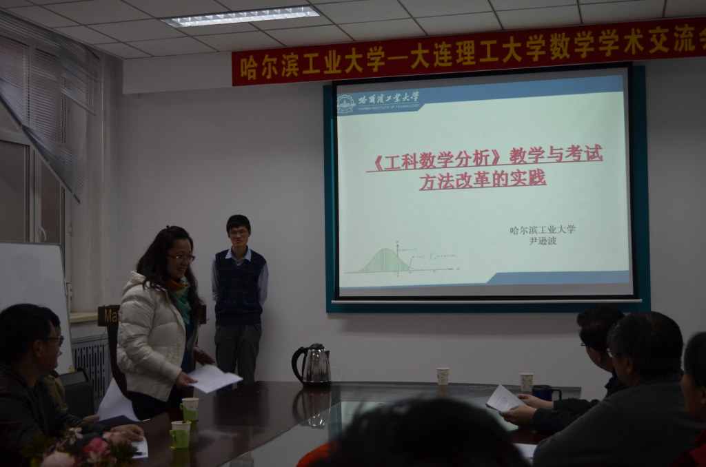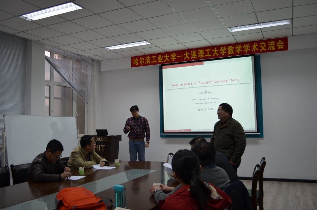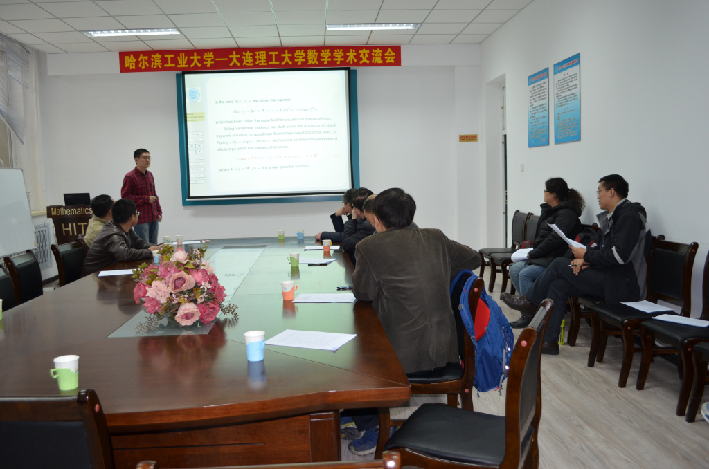 2015年4月11日,必赢bwin线路检测中心官网-大连理工大学数学学术交流会在必赢bwin线路检测中心官网数学系会议室举行。大连理工大学必赢bwin线路检测中心官网院长卢玉峰教授、书记刘西民教授等十多位教师,哈工大数学系吴勃英教授、付永强教授等二十余位师生参加了本次学术交流会。交流会开幕仪式由付永强教授主持,大连理工大学卢玉峰教授和哈工大数学系吴勃英教授先后为交流会致辞,并介绍了本校数学学科的发展现状和趋势,指出两校数学有很多共同点,以及对两校数学学科的进一步交流和发展进行了展望。开幕式结束后,两校的代表做了9场精彩的报告,双方就各自感兴趣的问题进行了探讨,在座师生都表示受益匪浅。 本次学术交流会成功的在学术成果、教科研管理和人才培养等方面进行了交流,彼此增强了共识,增进了两校数学的友谊。在双方教师的共同努力下,本次交流会圆满结束!