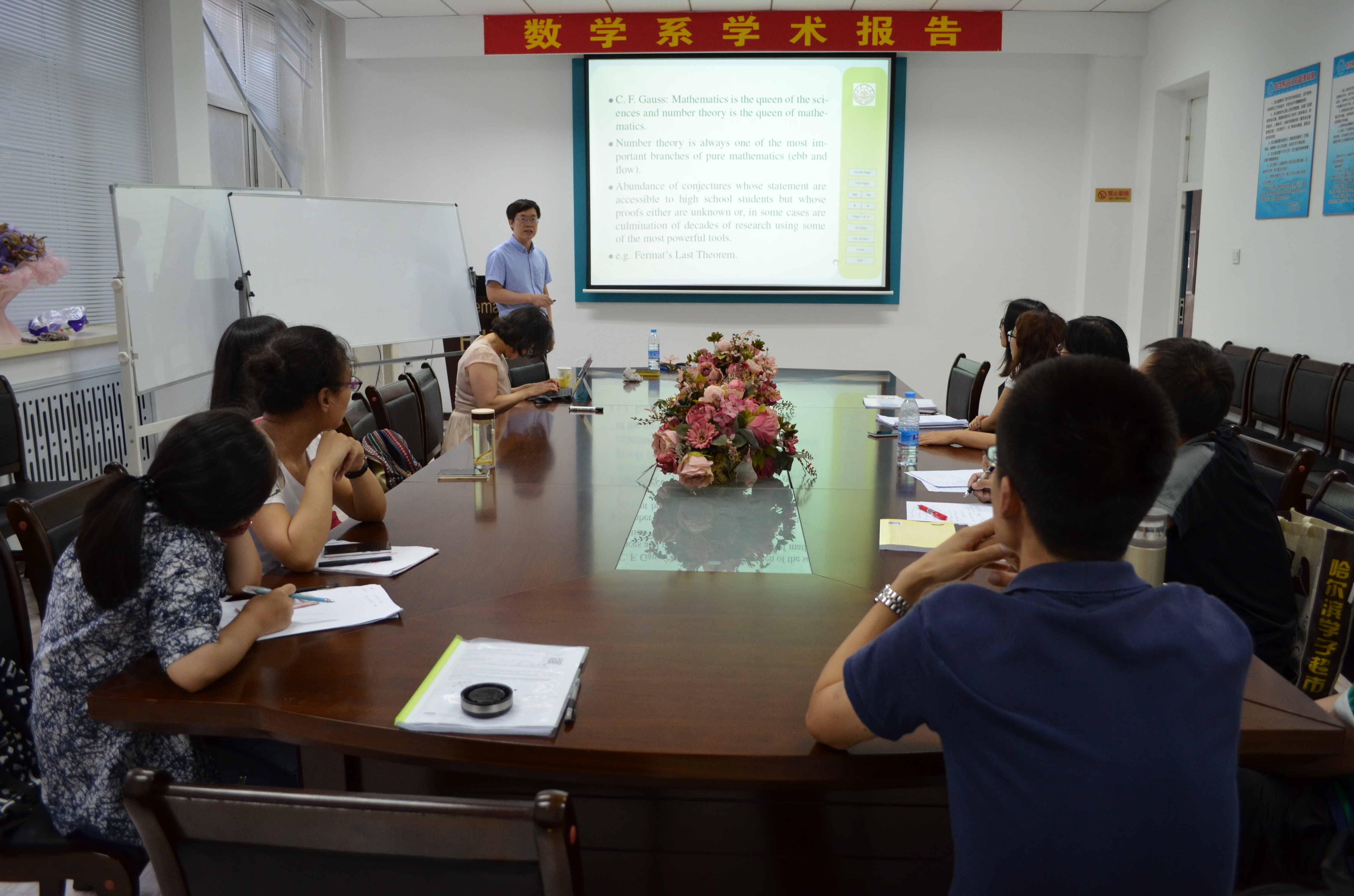 2016年6月21日和6月22日下午3:30-4:30,山东大学必赢bwin线路检测中心官网副院长,教育部新世纪优秀人才吕广世教授在数学系会议室(格物楼503)分别做了题为《Fourier coefficients of automorphic forms for higher rank groups》《Linnik's approximation to Goldbach's conjecture, and other problems》的学术报告,报告由张毅超教授主持,数学系十余位师生听取了报告,并进行了热烈的讨论。