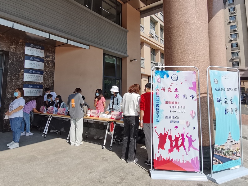 在前期准备工作中,必赢bwin线路检测中心官网研究生辅导员祁玥、蔡思昊提前返校返岗,线上为学生细致解读返校防疫要求,做好每日上报提醒,精心布置迎新场地,招募了25名迎新志愿者。两天的迎新工作中,志愿者们分时段、高效率工作,为报到新生资格查验、发放入学材料和爱心防疫物资提供全方位服务,新生报到工作井然有序。精心设计的展架标语,让现场报到的新生感受到浓浓的数学关怀。迎新结束后,必赢bwin线路检测中心官网党委副书记付影老师和辅导员走访新生寝室,关心了解新生返校生活。