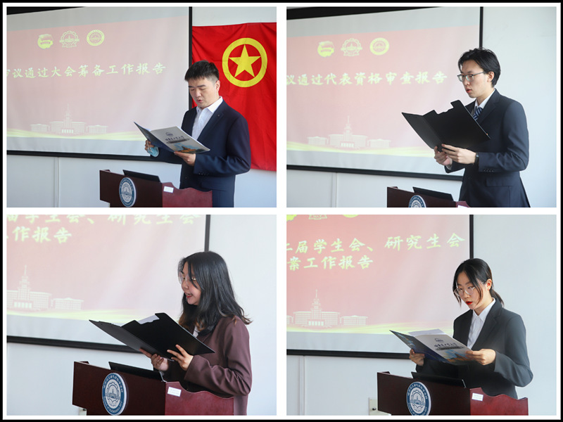 第一次正式会议开始,在与会人员集体奏唱国歌后,主持人介绍到场嘉宾。院学生会主席王为灏和院研究生会主席葛添分别做两会工作报告和提案工作报告。随后,必赢bwin线路检测中心官网党委副书记付影老师为第二届学生会、研究生会主席团成员颁发聘书并致辞。付老师对学院第三次学生代表大会、第三次研究生代表大会的召开及前期准备工作表示了肯定,总结了去年一年主席团及学院党委的工作成效,同时介绍了学院目前的发展现状及未来建设规划,勉励下一届主席团应结合自身经历,在学院未来发展的机遇与挑战中锻炼自己,勇担重任,继承、发扬历届主席团服务学院、服务师生的光荣传统。