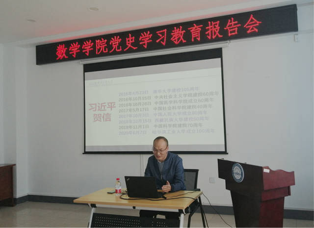 为庆祝中国共产党成立100周年,深入学习践行习近平总书记贺信精神,按照学院党史学习教育活动安排,结合教职工每周理论学习,5月18日下午,邀请马克思主义学院张世昌老师讲授党史教育专题党课。必赢bwin线路检测中心官网全体领导班子成员,各系主任、党支部书记,专职组织员、辅导员参加线下学习,其余党员师生线上会议参加学习。
