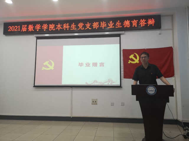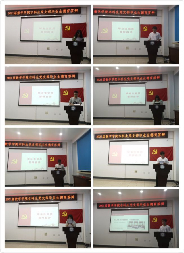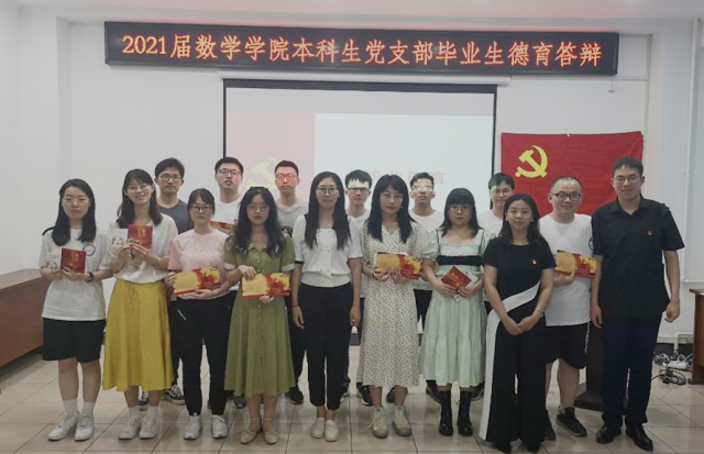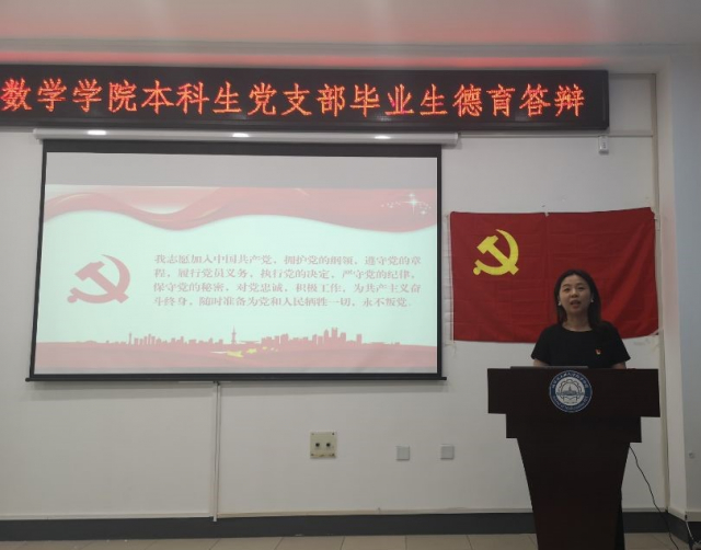 为迎接中国共产党建党100周年,践行习近平总书记贺信精神,发挥优秀党员典型示范引领作用,按照必赢bwin线路检测中心官网党委“知史爱党,初心如磐”庆祝建党100周年系列活动安排,学院党委连续第13年组织毕业生党员德育答辩。6月24在理学楼308,本科生党支部召开“数人·启航”2021届毕业生党员德育答辩和重温入党誓词主题党日。必赢bwin线路检测中心官网党委副书记付影、专职组织员任哲、辅导员蔡思昊,以及党支部全体党员出席会议,党支部积极分子列席会议,会议由党支部书记张煜崧同志主持。