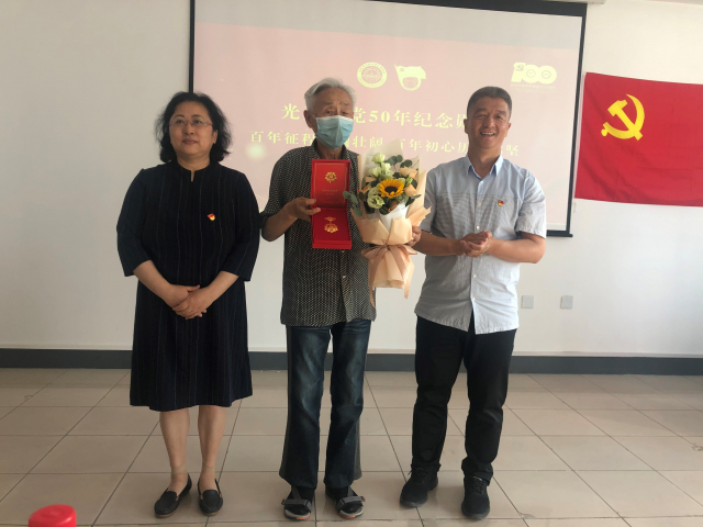 在中国共产党成立100周年之际,6月25日在理学楼308会议室,必赢bwin线路检测中心官网党委举行“光荣在党50年”纪念章颁发仪式,向老党员代表颁发中共中央“光荣在党50年”纪念章。