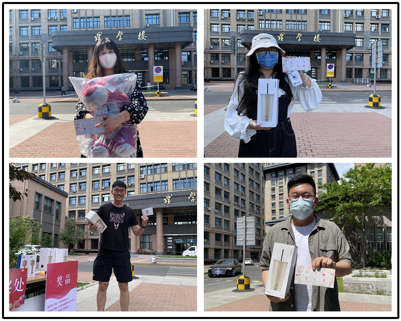 本次活动含“踢毽子”“跳绳”“摸石过河”“沙包投准”“背夹球”“夹乒乓球”六项运动,每通过一项活动即可获得一枚印章,最终根据印章数量兑换相应奖品。本次活动吸引到近百人参与,除大学生以外,还有老师、宿管阿姨和幼儿园小朋友的身影。活动第一天,就有许多博士生和老师们前来询问活动的参与方式,在了解好规则后都选择进行挑战。这让本次嘉年华活动从一开始就热闹非凡,并不断吸引着更多路过的同学们,同学们叫来课题组的同门前来参与活动,老师也带着自己的孩子来进行亲子小游戏,整场活动其乐融融。