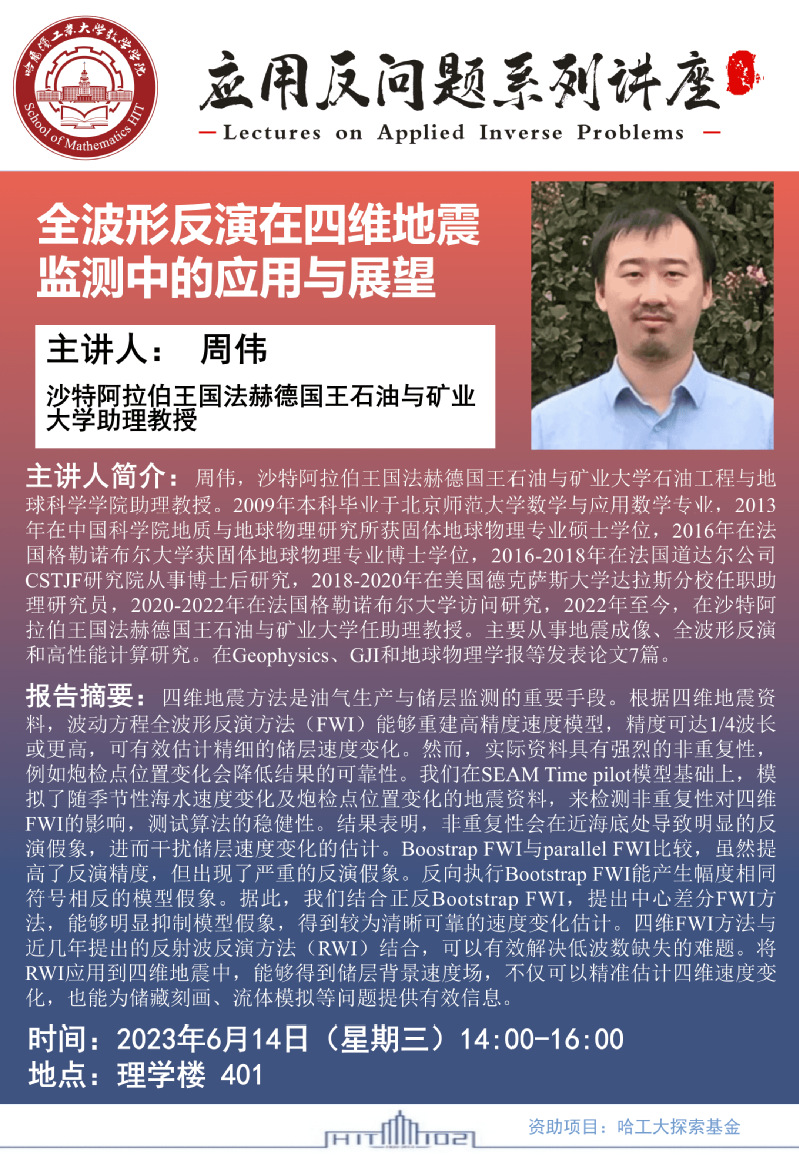 沙特阿拉伯王国法赫德国王石油与矿业大学助理教授周伟讲座通知