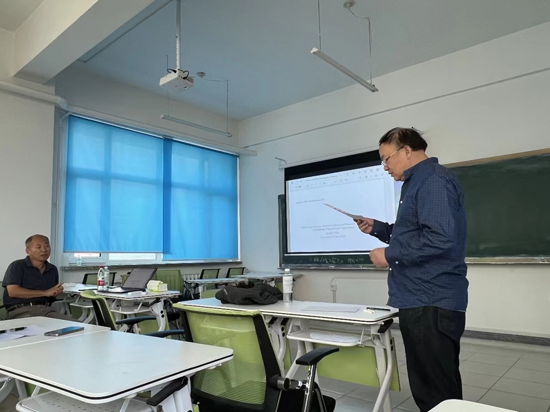 本次报告邀请了圣母大学袁克海教授,我校必赢bwin线路检测中心官网概率统计与运筹控制系主任田波平教授致欢迎词,表示了对袁教授到来的欢迎和感谢,数位本校老师和学生聆听了报告。