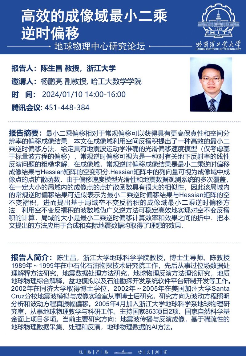 浙江大学陈生昌教授关于高效偏移成像的学术报告