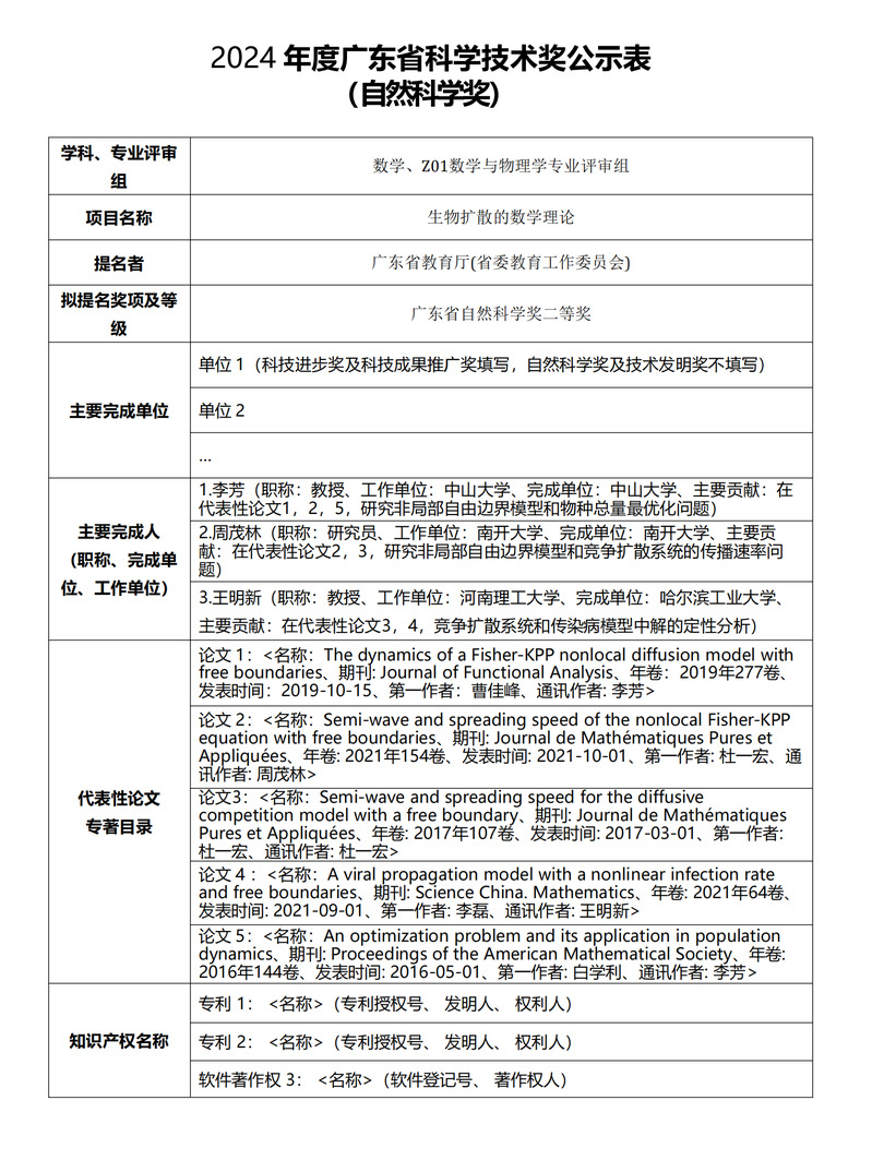 根据广东省科学技术奖申报的相关要求,现对申报人材料予以公示。