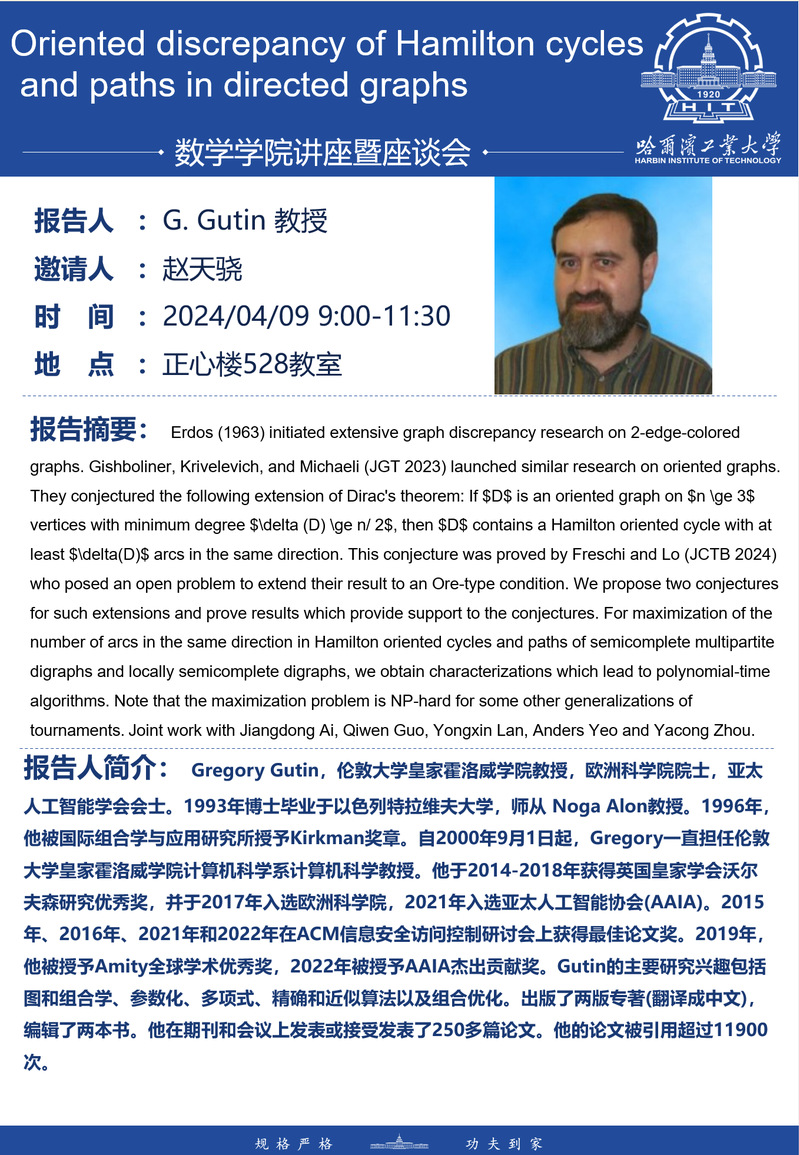 伦敦大学皇家霍洛威学院Gregory Gutin教授报告通知